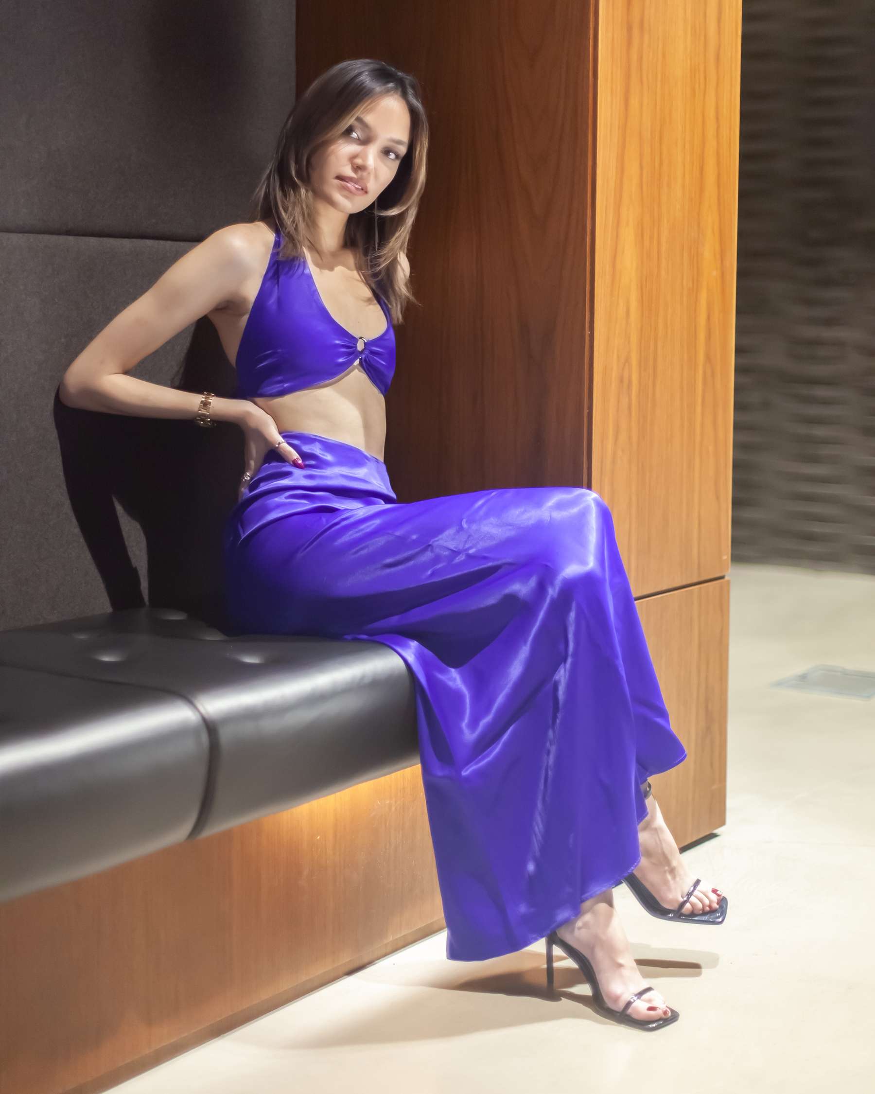 Deniz Mavisi Saten Alt Üst Takım Elbise ile her ortamda göz alıcı bir stil yaratabilirsiniz.